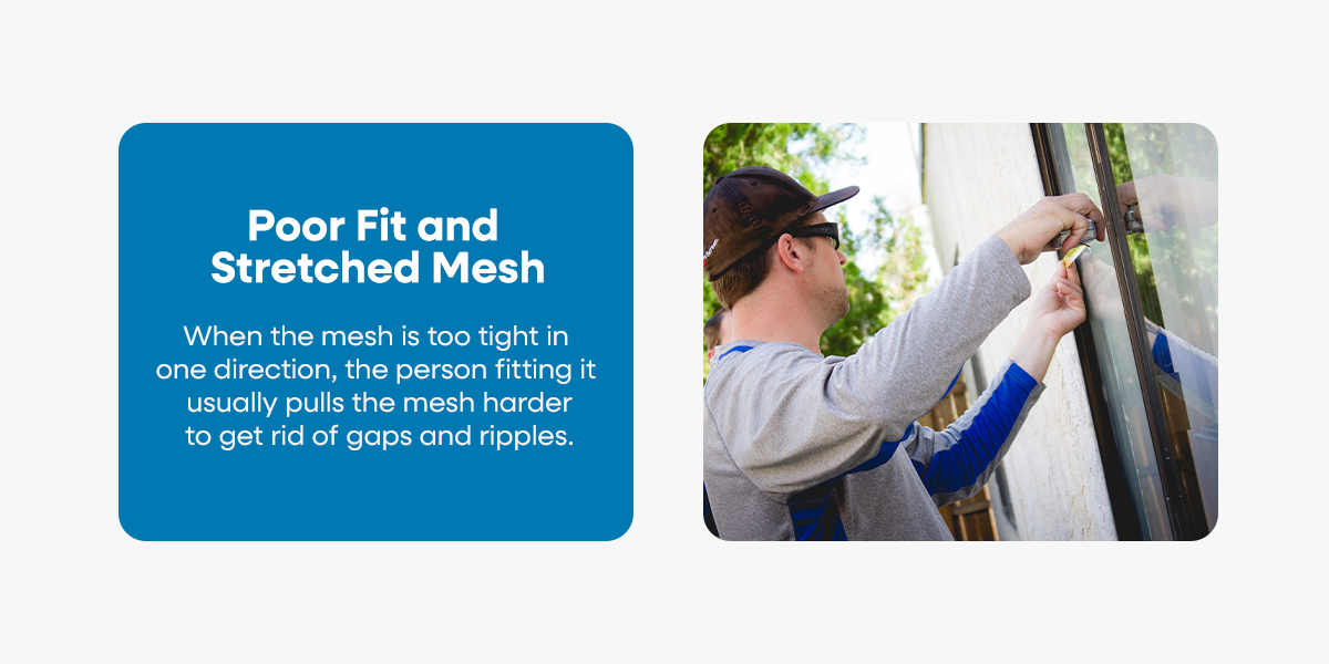 When the mesh is too tight in one direction, the person fitting it usually pulls the mesh harder to get rid of gaps and ripples. That tension may make the screen look flat and neat on day one, but all that strain is sitting in the fabric and the effects will soon show.